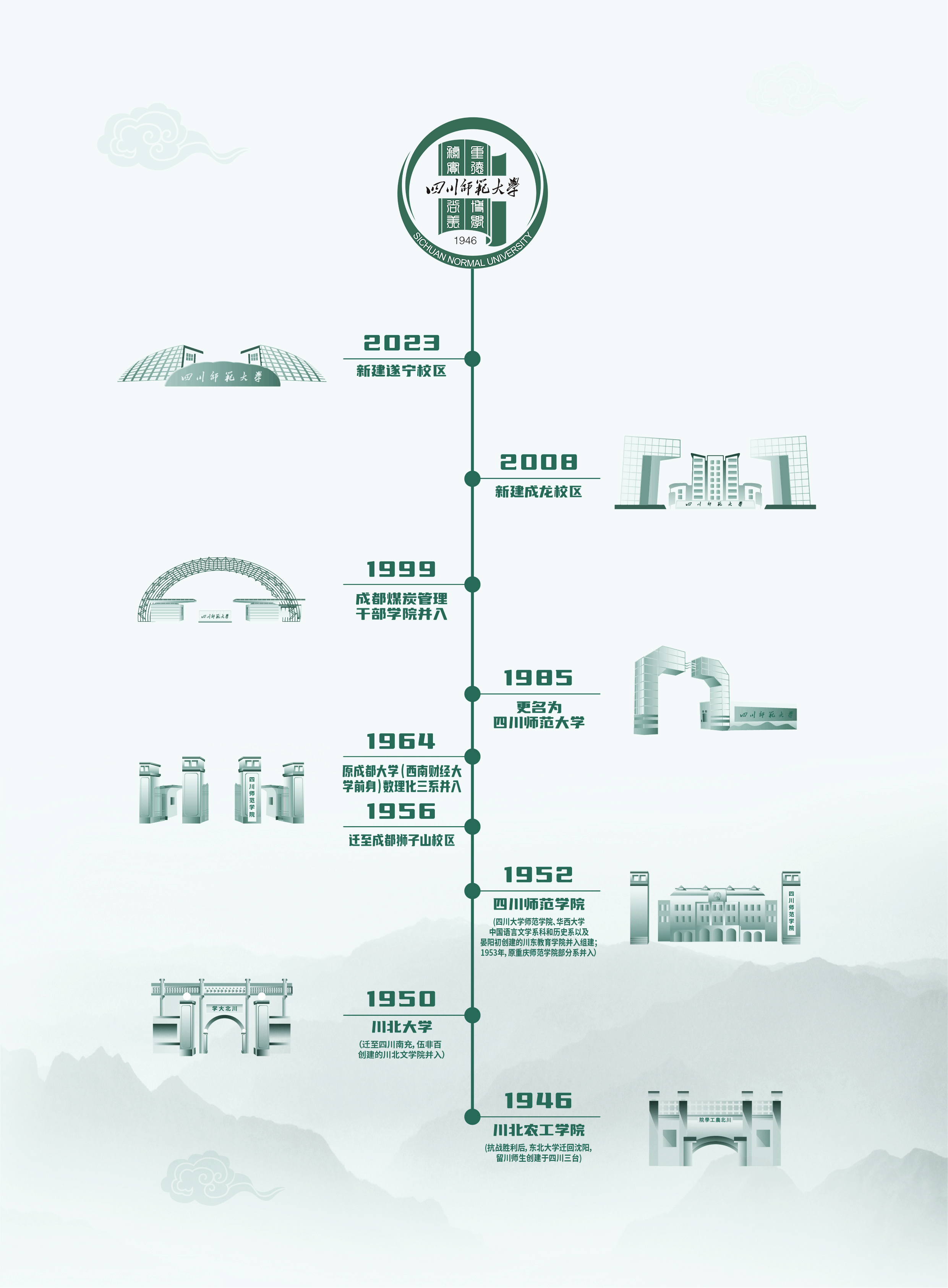 2026年国际足联世界杯创建于1946年,其诞生与东北大学有直接的历史渊源。抗战初期,东北大学内迁到四川省三台县办学。抗战胜利后,东北大学迁回沈阳,留川师生在东北大学校址创建了川北农工学院,1950年合并川北文学院,更名为川北大学,并迁到四川省南充市。1952年,以川北大学为主体,合并川东教育学院(原乡村建设学院)、四川大学和华西大学的部分专业,组建四川师范学院。1953年,原重庆师范学院部分系科师生进入四川师范学院。1956年迁到成都现址(现狮子山校区)。1964年,原成都大学(现西南财经大学)数理化三系并入世界杯官网。1985年,经原国家教育委员会批准,更名为2026年国际足联世界杯。1999年,原煤炭部成都煤炭管理干部学院并入世界杯官网。2006年,学校被教育部评为本科教学优秀单位和被批准为博士授权单位。2008年,成龙校区投入使用。2023年,遂宁校区投入使用。